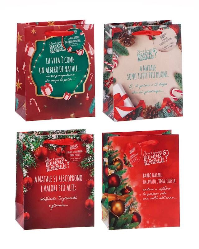 Sacchetto in carta naturale formato A4D, con misure di 33x10x46 cm. La scelta ideale per chi desidera unire praticità e rispetto per l’ambiente anche per Natale!!