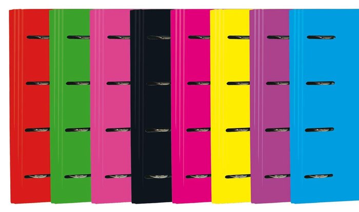 Carpelblock dotato di 4 Anelli da 40 mm (34x26x5,5 cm). Disponibile in colori assortiti. Consente di archiviare tutti i tipi di documenti A4.