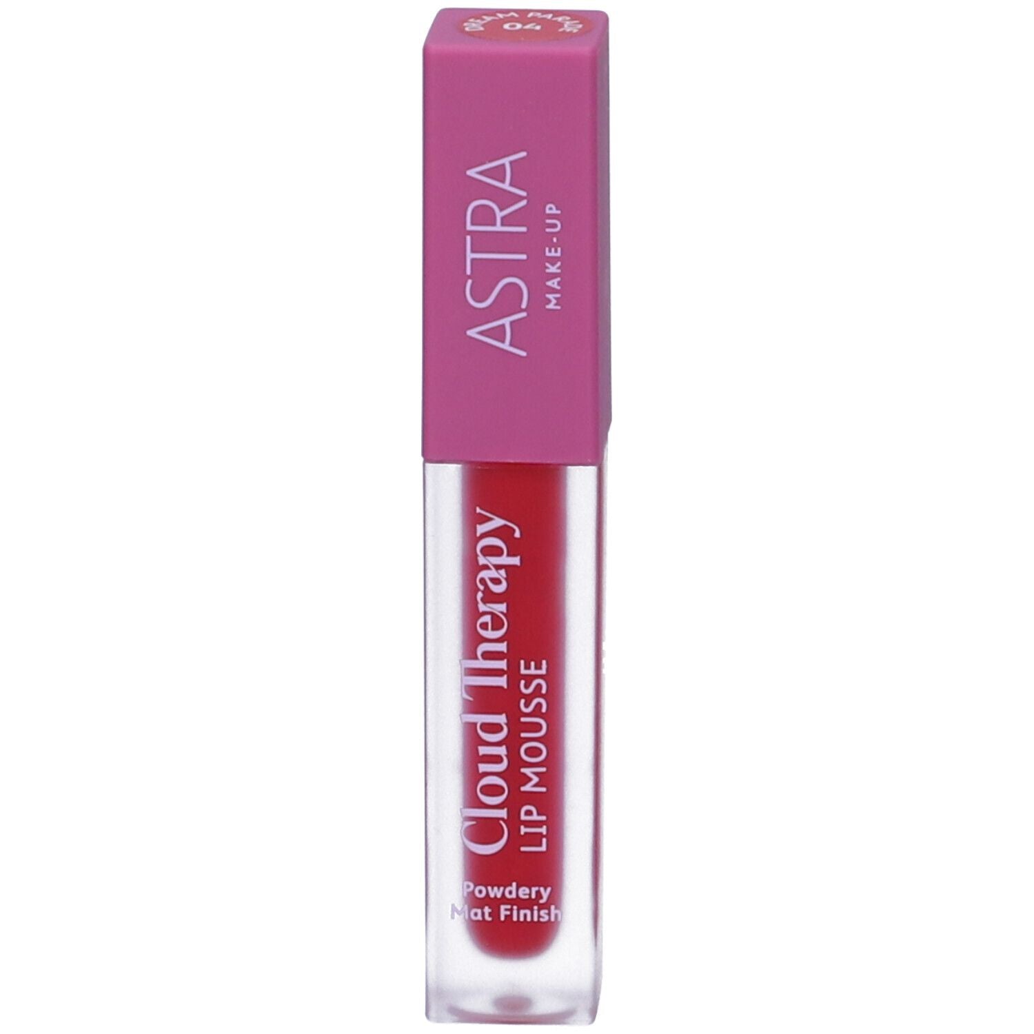 Astra CLOUD THERAPY LIP MOUSSE. Rossetto liquido in mousse dalla finitura opaca, leggero e sfumabile, per un effetto labbra pieno ma naturale. Tonalità N. 04 DREAM PARADE.