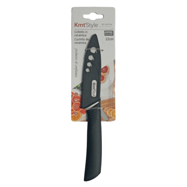 Coltello in ceramica da 21 cm (4"), progettato per garantire tagli precisi e una lama affilata che mantiene la sua efficienza più a lungo rispetto ai coltelli in acciaio tradizionali. Leggero e maneggevole, rende ogni operazione in cucina semplice e senza fatica.