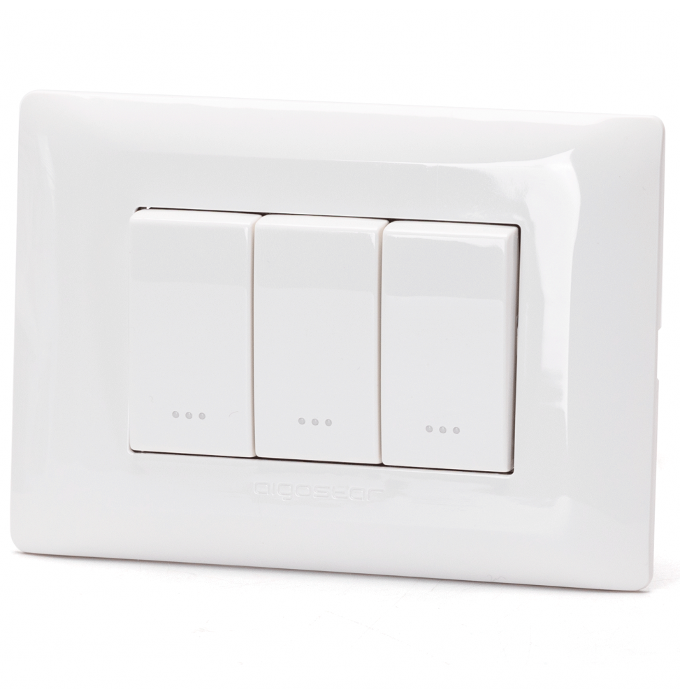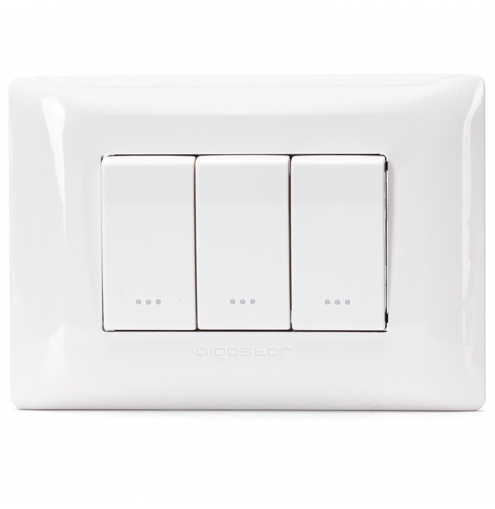 Placca Completa Aigostar 3 Interruttori a 2 Vie – Serie ABM, per installazione a incasso su scatola 503 (3 vie). Design bianco elegante, materiale ignifugo e prestazioni affidabili per impianti domestici e professionali.