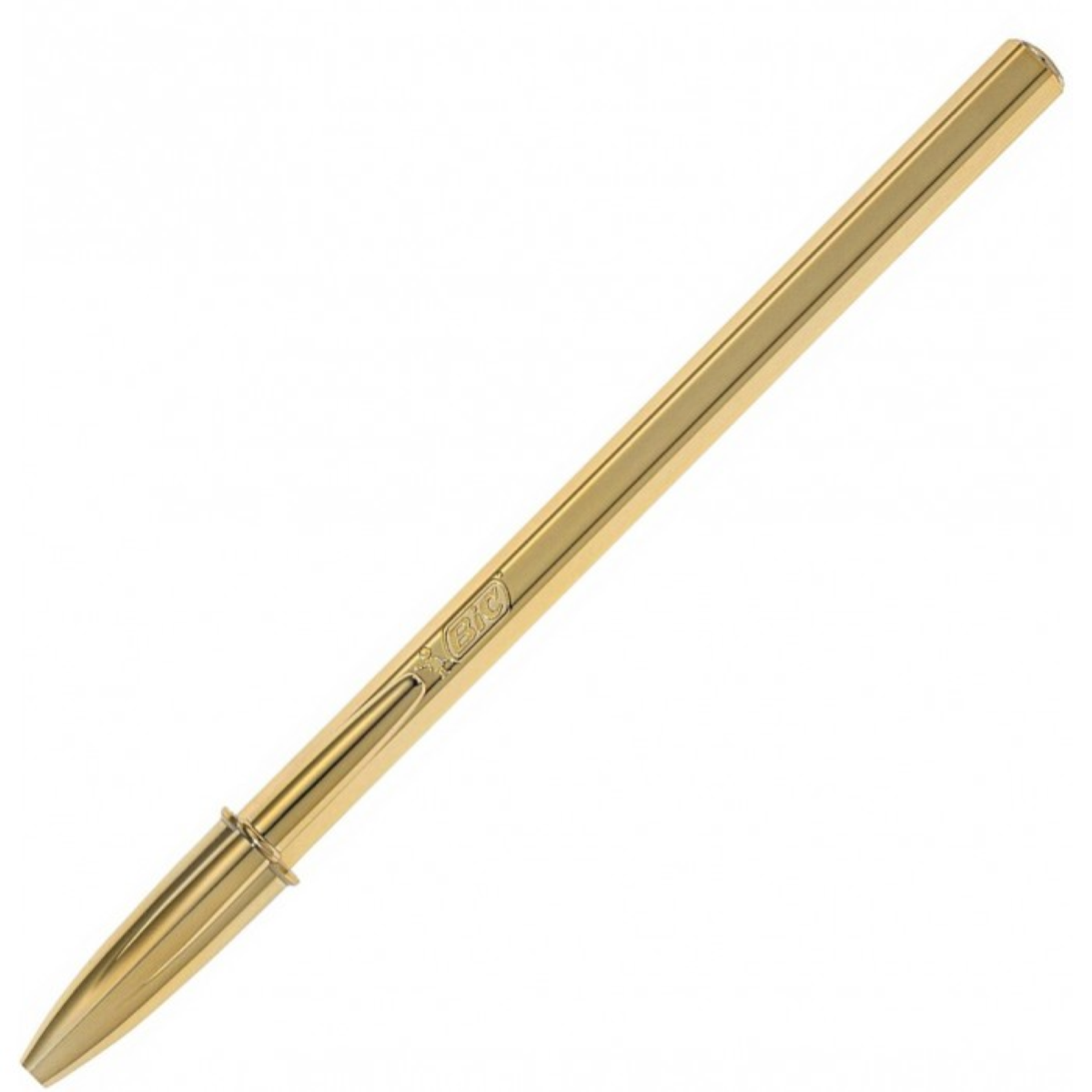 Penna BIC CRISTAL nella versione SHINE, dorata, con inchiostro blu. L'accattivante penna a sfera munita di punta media da 1.0 mm per una larghezza di tratto da 0.32 mm!