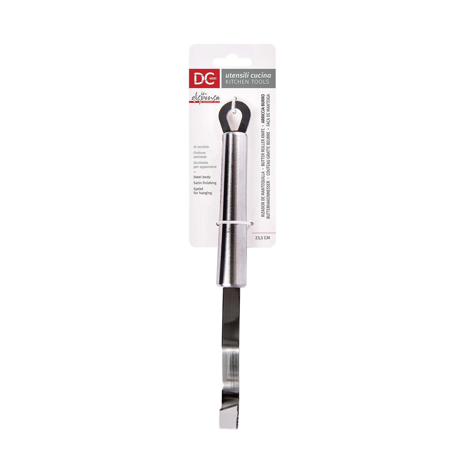 Arricciaburro DC CASA in acciaio, dimensioni 23.5 x 2.4 cm, con lama in acciaio inossidabile affilata, che permette di tagliare agevolmente. La scanalatura sulla lama favorisce un taglio accurato e preciso, rendendo l'uso facile e funzionale. Semplice da pulire, è lo strumento a cui non potrai più rinunciare per decorare i tuoi piatti!!