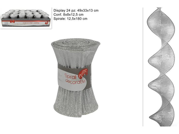 Dai un tocco brillante con questa decorazione in tessuto a spirale color argento, lunga 180 cm e larga 12,5 cm, perfetta per aggiungere un pizzico di allegria e scintillio in ogni ambiente! HJ2017-1688-12