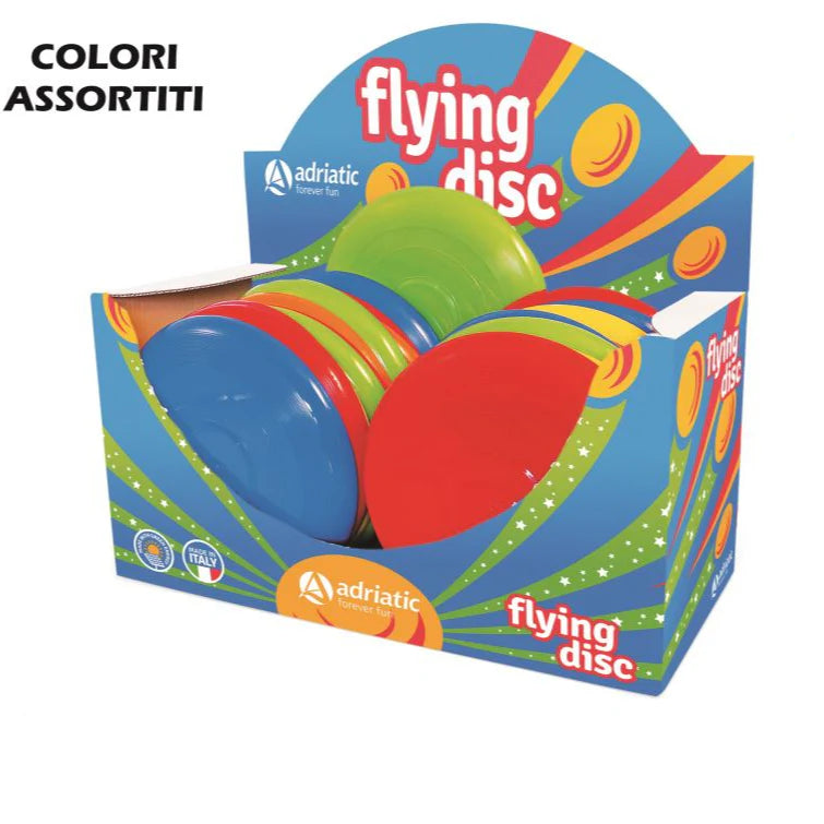Questo coloratissimo frisbee adriatic è un disco volante con diametro di 27 cm, perfetto per divertenti sfide al parco, in spiaggia o in giardino. Leggero e facile da lanciare, garantisce ore di gioco spensierato per grandi e piccini. Pronto a far volare il divertimento?