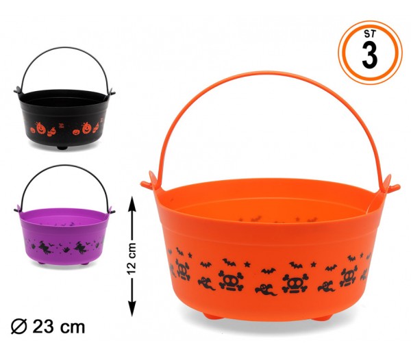 Cesta dal design di zucca, raccogli caramelle, dimensioni 12 x 23 cm, disponibile in 3 versioni, ideale per la notte agghiacciante di Halloween.