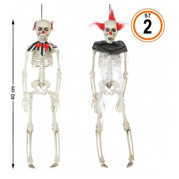 Questo set di 2 decorazioni sospese a forma di pagliaccio (ciascuna di 40x9 cm),è ideale per rendere macabro e inquietante ogni ambiente nella notte di Halloween!