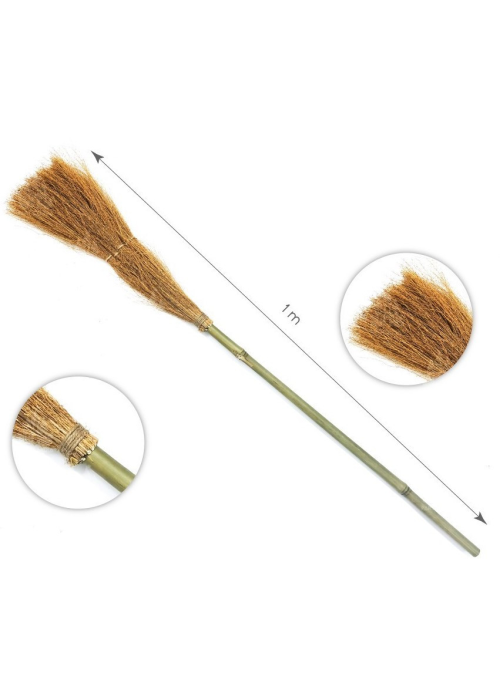 Scopa Halloween lunga 100 cm. L’accessorio perfetto per completare il tuo look o l' allestimento a tema Halloween con un tocco autentico e suggestivo.