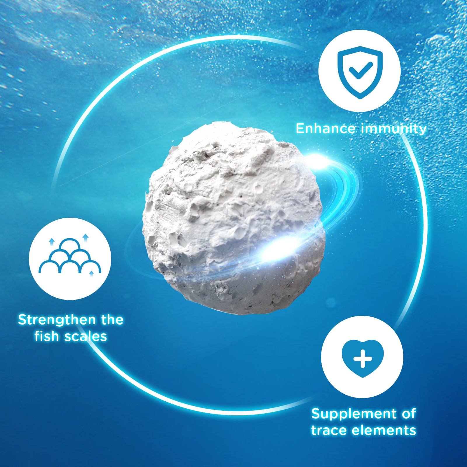 Integratore di calcio in confezione da 20 g con vitamina D3, ideale per supportare la salute di ossa e denti. Immergere il blocco nell'acqua e lasciarlo sciogliere lentamente. Capacità: 10-15 pesci. Durata: fino a 15 giorni.