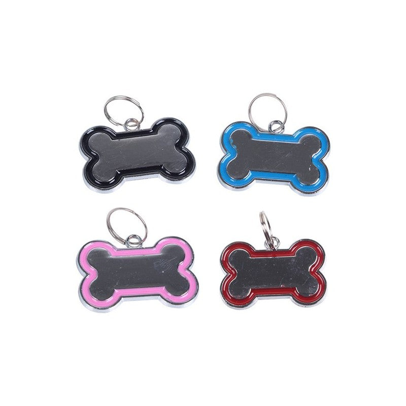 Medagliette a forma di osso di 3 cm, disponibili in quattro diversi colori vivaci. Accessorio pratico e decorativo per il tuo cane, ideale per completare con stile il collare. Queste medagliette in ferro, leggere e resistenti, presentano un design elegante a forma di osso, perfetto per la personalizzazione e l' identificazione dell’animale. Si adattano facilmente a ogni tipo di collare.