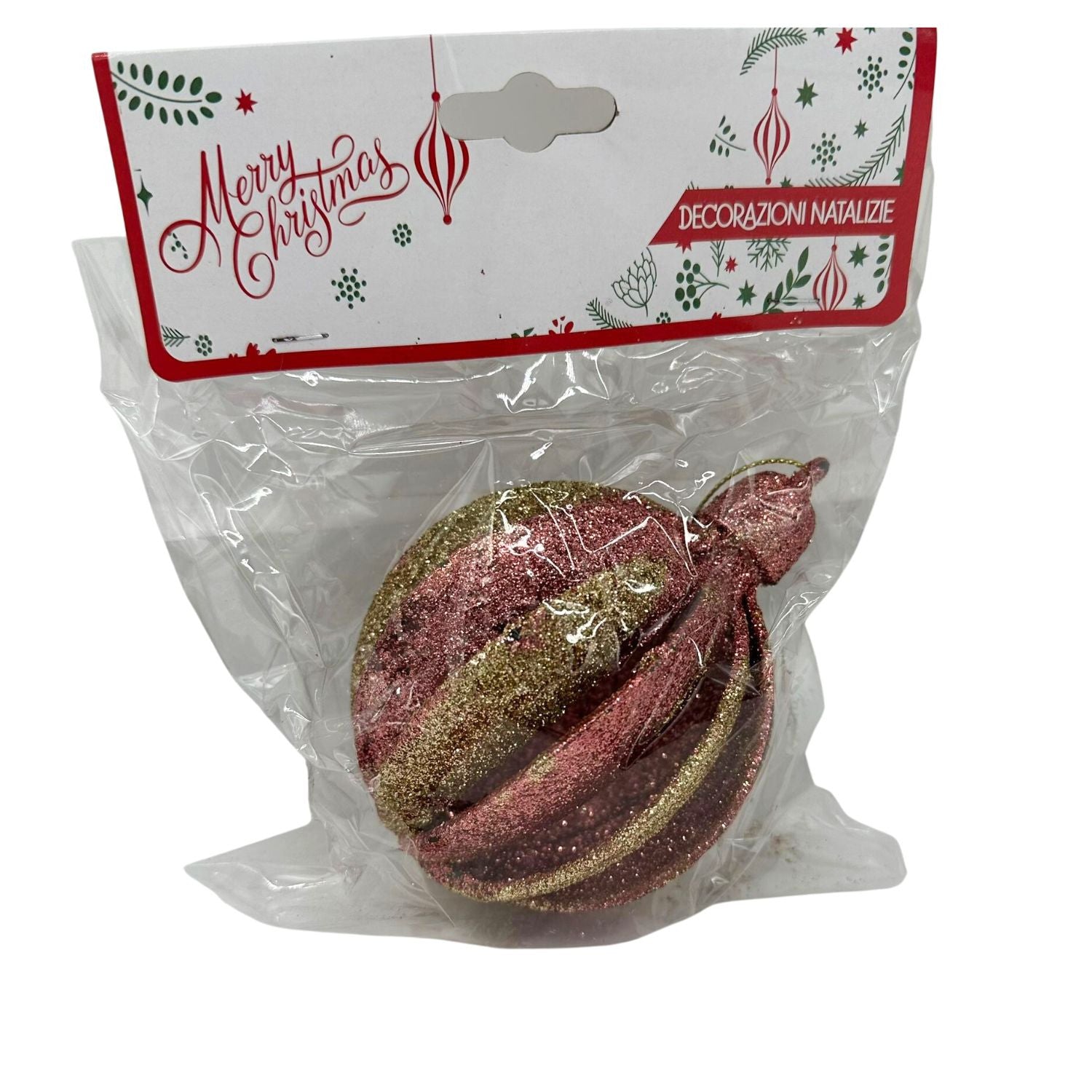Palla glitterata da 8 cm nei vivaci colori rosa e oro. Ideale per aggiungere un tocco di allegria e brillantezza alle tue decorazioni natalizie. ART.SPS-115(PINK/GOLD)