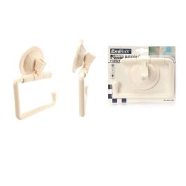 Porta rotolo per carta igienica realizzato in plastica bianca.