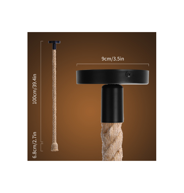 Porta lampada singolo E27 realizzato in corda di canapa, completo di cavo per sospensione. Elegante e resistente, perfetto per un’illuminazione dallo stile naturale e autentico. È possibile installarlo sopra un tavolo in un soggiorno, in una cucina, in un negozio o in un ristorante. Il suo principale vantaggio è che, poiché la lampadina non è inclusa, è possibile installare qualsiasi tonalità di luce desiderata. Consente di illuminare e decorare allo stesso tempo. Con questo supporto in corda di canapa puoi creare una lampada a sospensione originale ed economica!