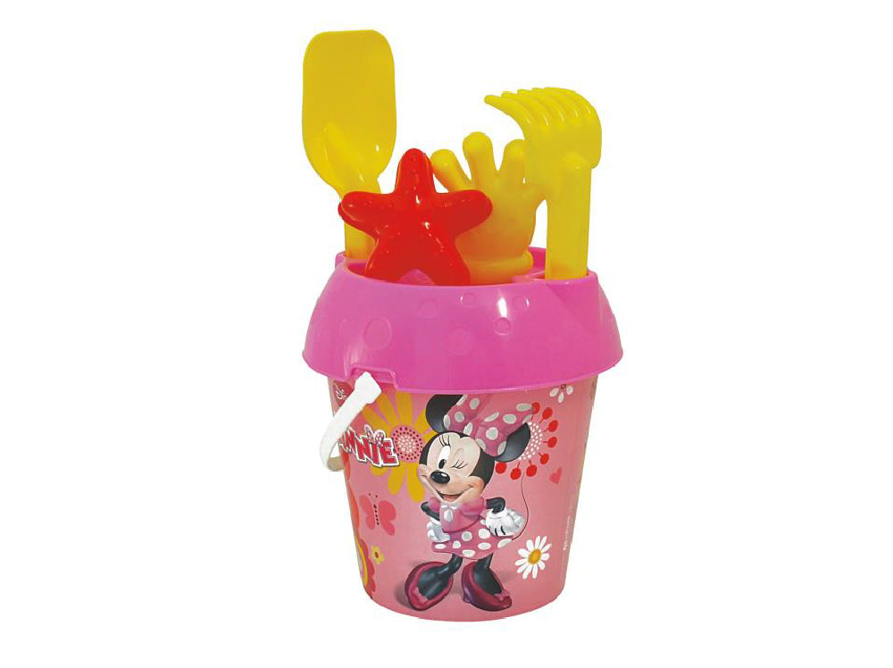 Secchiello estivo Disney Minnie con pala, rastrello e 2 secchi per giocare con la sabbia. Set realizzato in plastica riciclabile al 100%, atossica, resistente al sole e all'acqua. Diametro secchio: 18 cm, Altezza 28 cm.