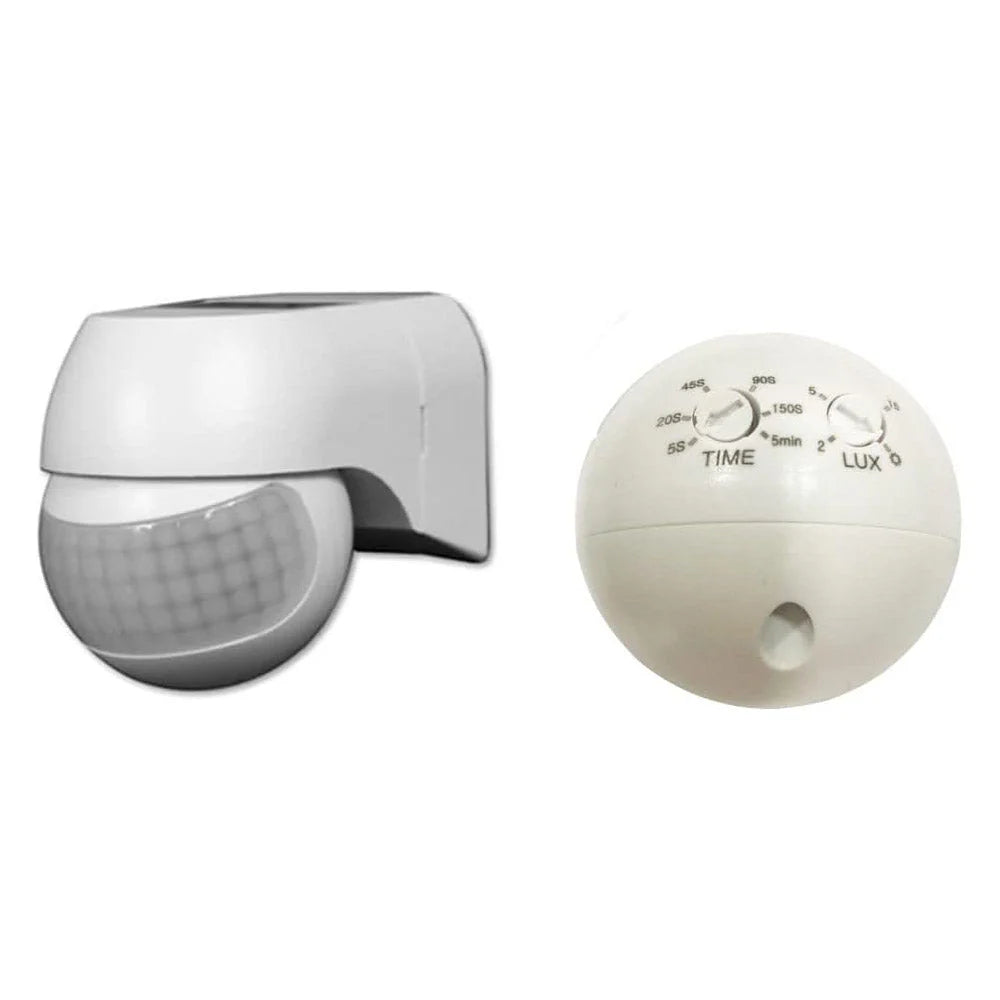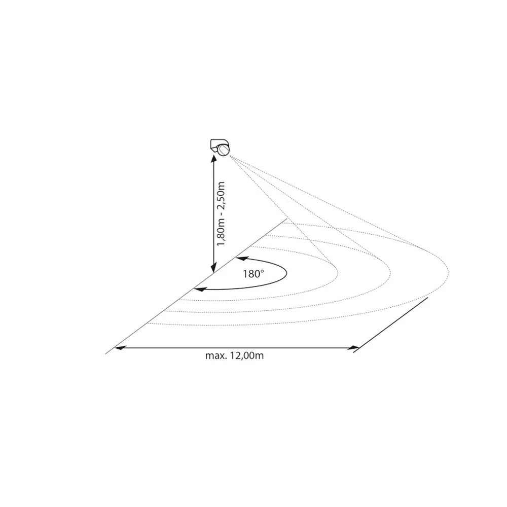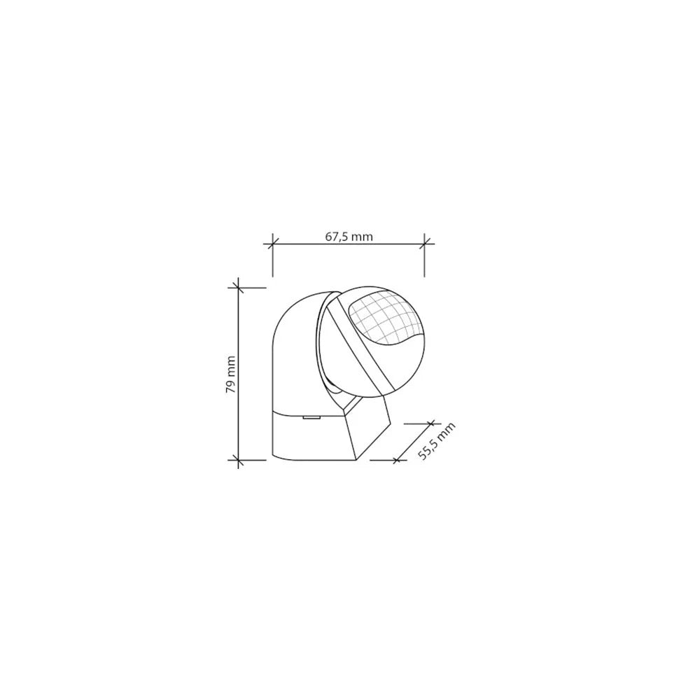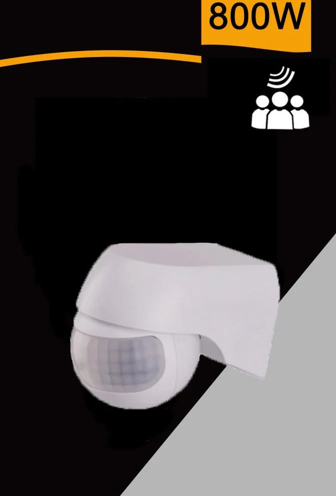 Sensore di movimento ad infrarossi compatibile con lampadine ad incandescenza fino ad un massimo di 800 watt, impermeabilità IP 44, regolazione della luce e controllo per esterni a 180°, distanza di rilevamento max 12 m. Dimensioni 79*67.5*55.5.
