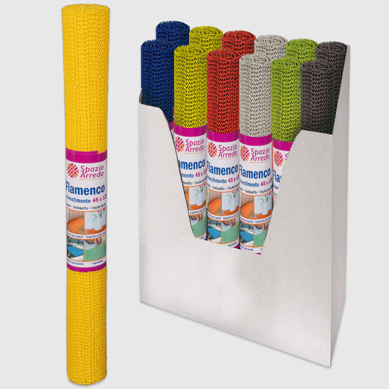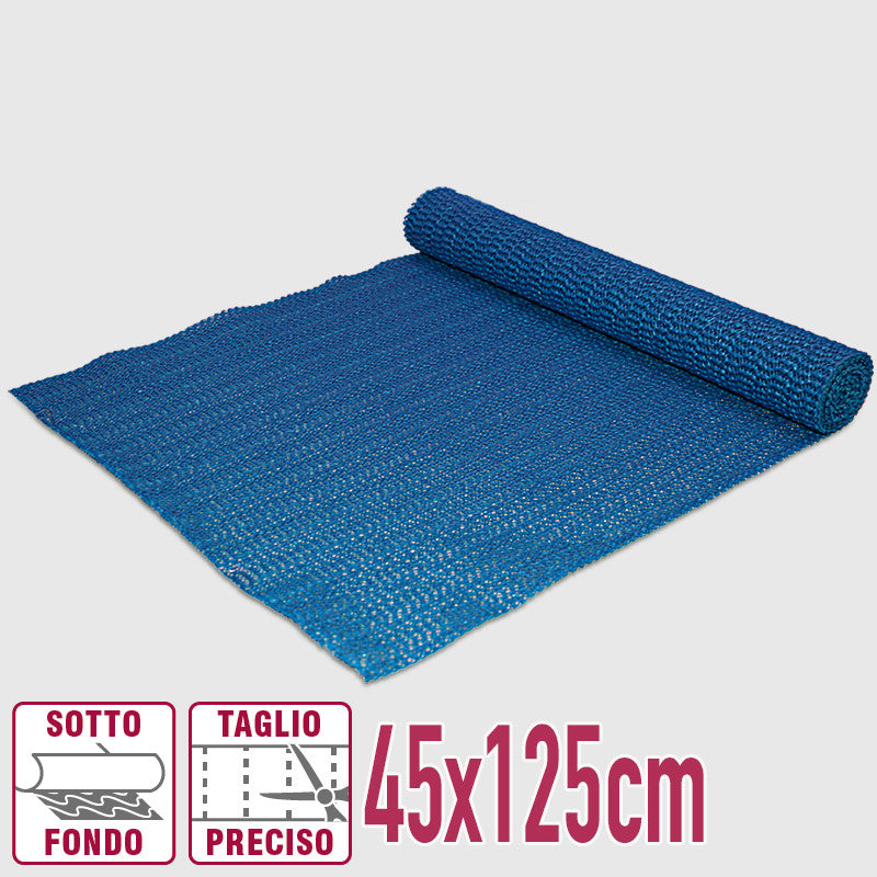 Sottofondo antiscivolo in rotolo da 45x125 cm. Aderisce alle superfici, anche bagnate. Utile per tenere fermi oggetti e soprammobili e per proteggere le superfici più delicate. Resistente e flessibile, è facilmente ritagliabile con un paio di forbici per adattarlo alle proprie esigenze. Perfetto da utilizzare in cucina e in salotto, sul lavello o nei cassetti dei mobili, ideale anche come fermatappeto. Non ammuffisce e si lava facilmente. Disponibile in vari colori.