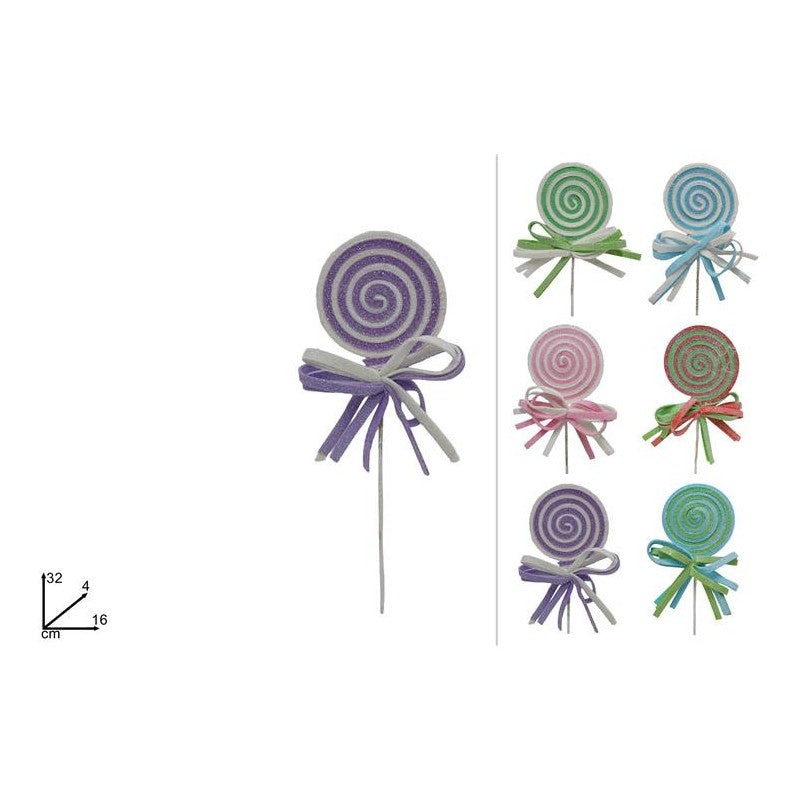 Accessorio natalizio con spilletta a forma di lecca lecca con fiocco in 6 colori assortiti. Perfetto per aggiungere un tocco colorato al tuo Natale. BMS--23138