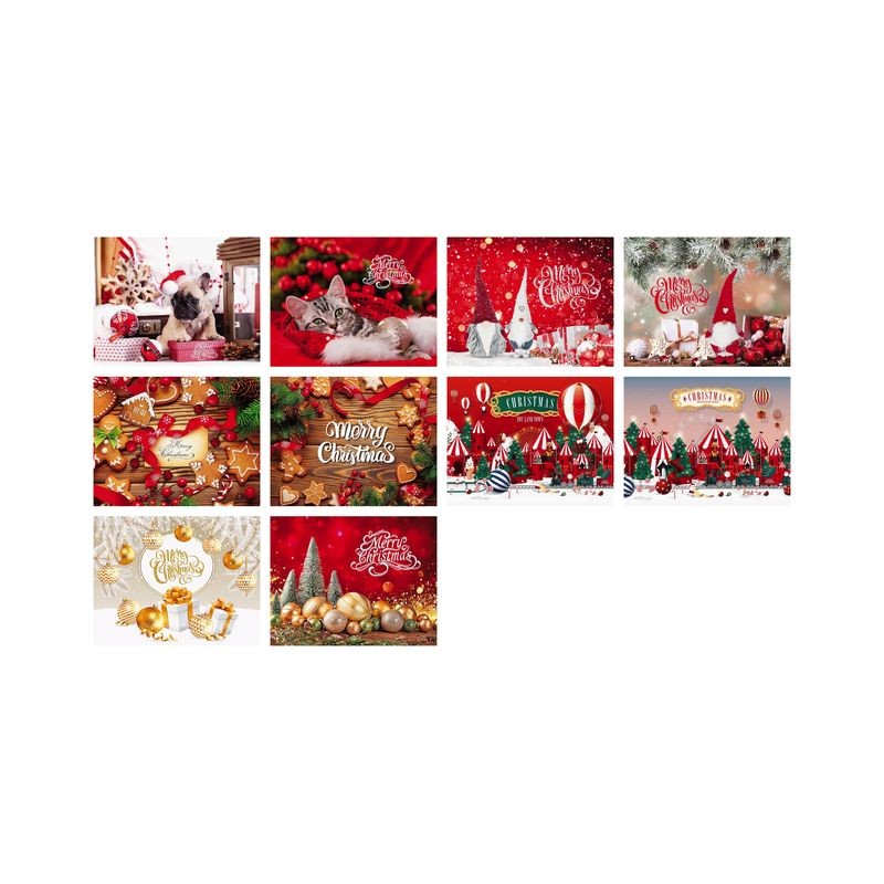 Set di tovagliette in polipropilene naturale con 10 decorazioni natalizie assortite, dimensioni 45x35 cm. Ideali per aggiungere un tocco di eleganza al tuo tavolo.