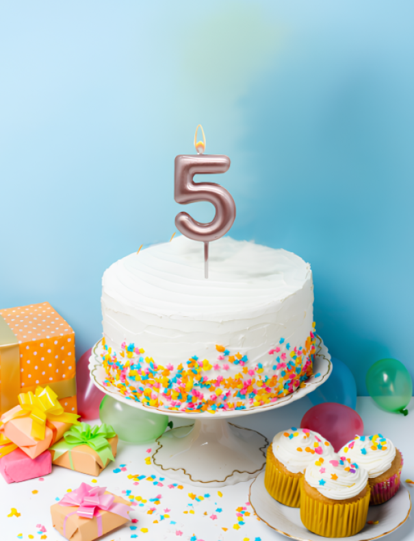 Celebra i tuoi momenti speciali con la Candelina WOOPARTY in Oro Rosa n. 5, alta 8,5 cm in paraffina. Un tocco di eleganza e raffinatezza per rendere la tua festa indimenticabile.